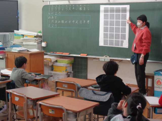 2年生の算数の様子です。1000より大きい数の数え方について学習しています。
